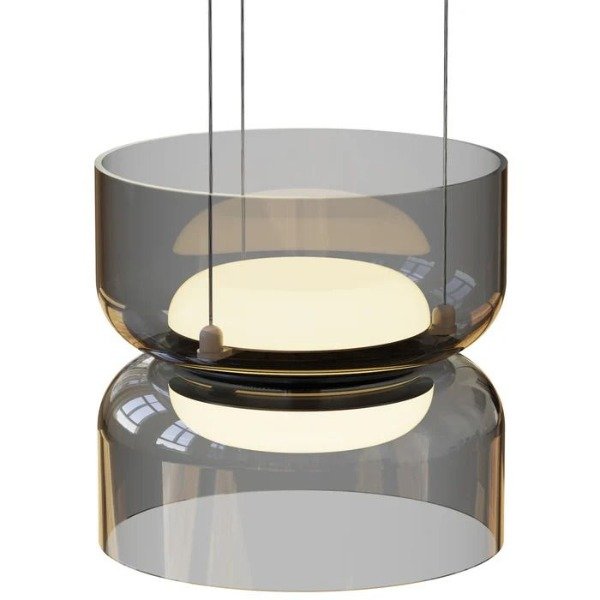 El vidrio gris translúcido permite apreciar la fuente de luz de manera sutil, generando un juego de sombras y reflejos que realza la textura y profundidad del material. Perfecta para espacios modernos y acogedores.
