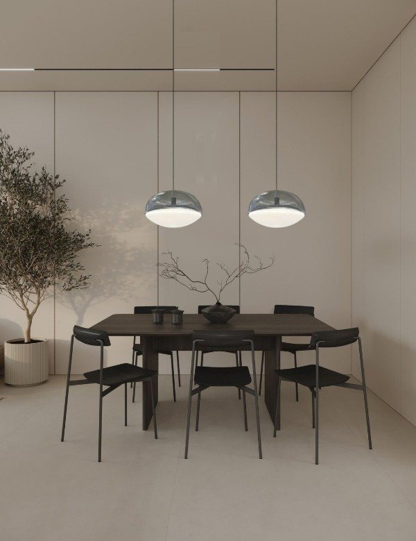 Equipada con luz cálida LED 2700K, genera una atmósfera confortable, ideal para comedores, livings y espacios de diseño.