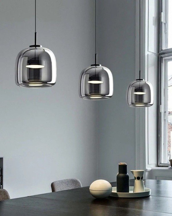 La colección SEATTLE combina vidrio ahumado en tono gris con detalles en metal negro, logrando un diseño moderno y elegante. Sus proporciones estilizadas aportan verticalidad y carácter, convirtiéndola en la pieza ideal para comedores, livings o espacios con doble altura.