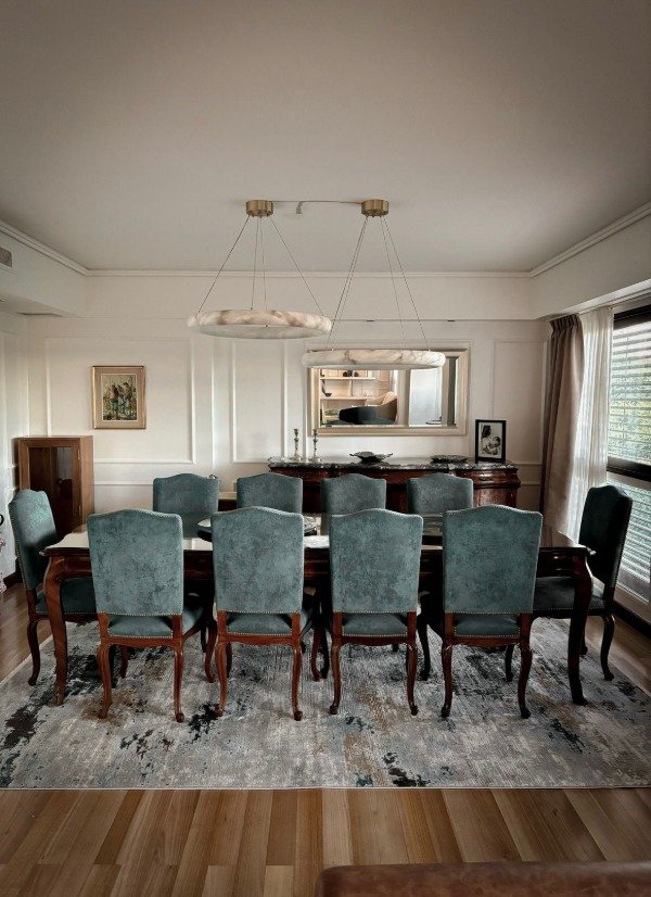 Lámpara de diseño elegante y moderno, ideal para iluminar espacios grandes con estilo y eficiencia.