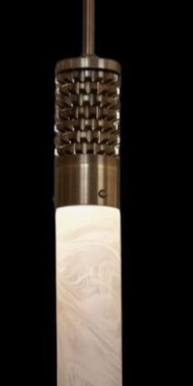 La NAMI combina la delicadeza del alabastro natural con la fuerza del metal en acabado bronce, dando vida a una lámpara colgante que encarna elegancia atemporal y diseño contemporáneo. Su forma esbelta y vertical la convierte en una pieza versátil, perfecta para ambientes que buscan una iluminación sutil pero con carácter.